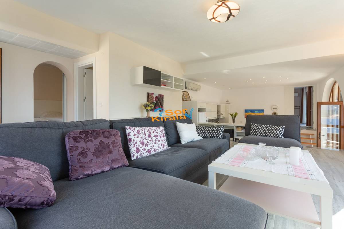 Oturma odasında klima, salon takımı, wi-fi internet, uydu tv, dvd oynatıcı ve yemek alanı bulunmaktadır.