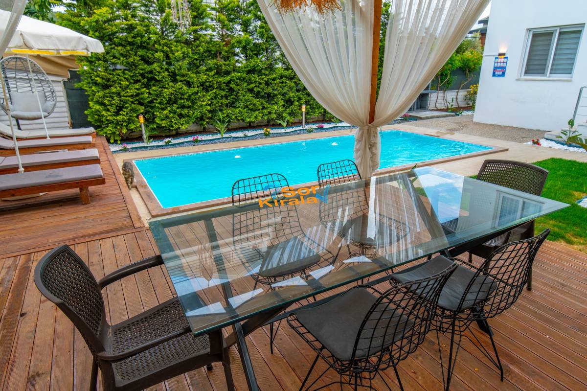 Villa, 4 yatak odasına sahip olup toplamda 8 kişiye kadar konaklama kapasitesine sahiptir. Modern ve şık dekorasyonu ile misafirlerine ev rahatlığını sunar. Geniş oturma alanı, tam donanımlı mutfağı ve ferah terasıyla keyifli vakit geçirmenizi sağlar.